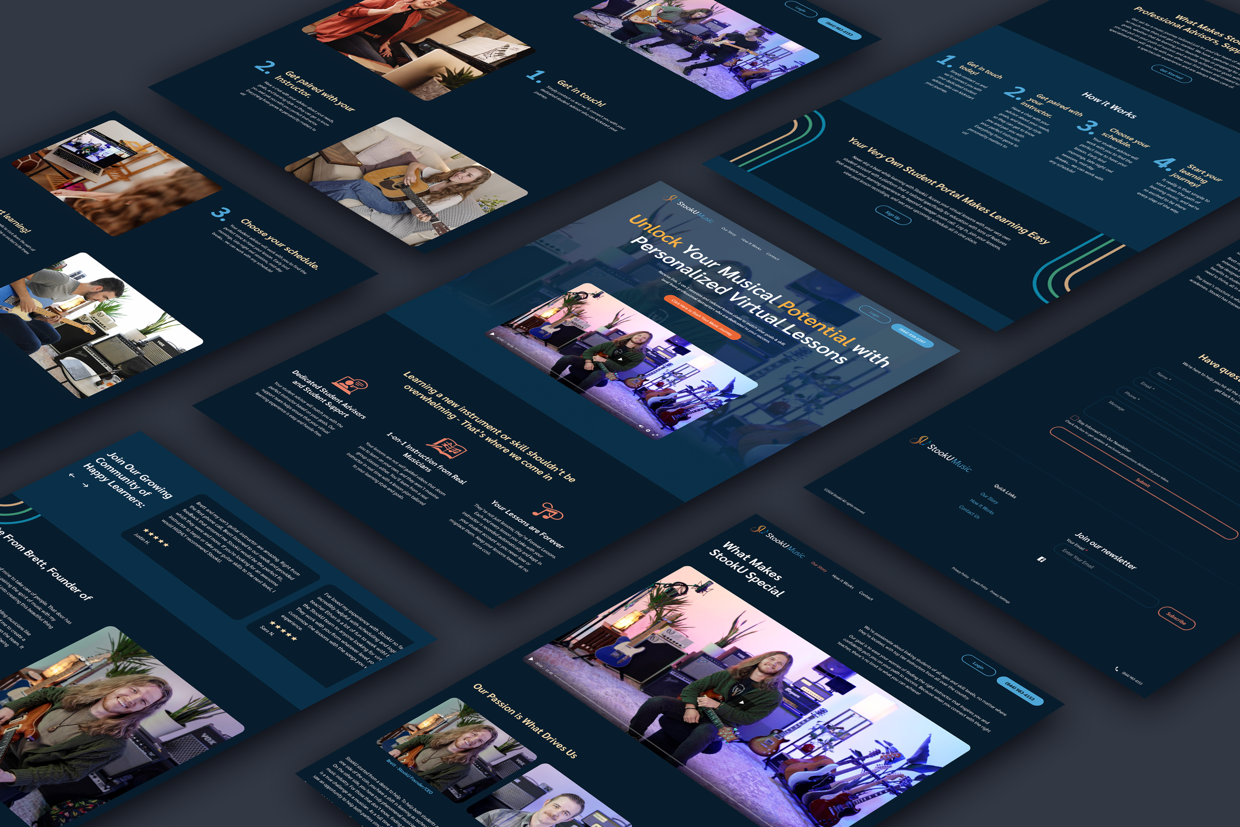 StookU Music transforms virtual music education by offering personalized, real-time lessons from professional musicians across the nation. Initially, StookU used Thumbtack's platform to advertise their services, but scalability became an issue. To address this, we transitioned StookU off of Thumbtack and implemented a new strategy using Google PPC and social media ads to drive traffic to a conversion-focused website.